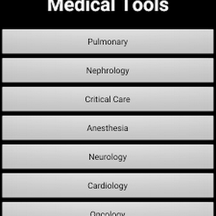 kalkulator medis dan alat-alat medis seperti sistem interpretif dan uji scoring diklasifikasikan oleh khusus, seperti paru, perawatan kritis, kardiologi, neurologi dan onkologi